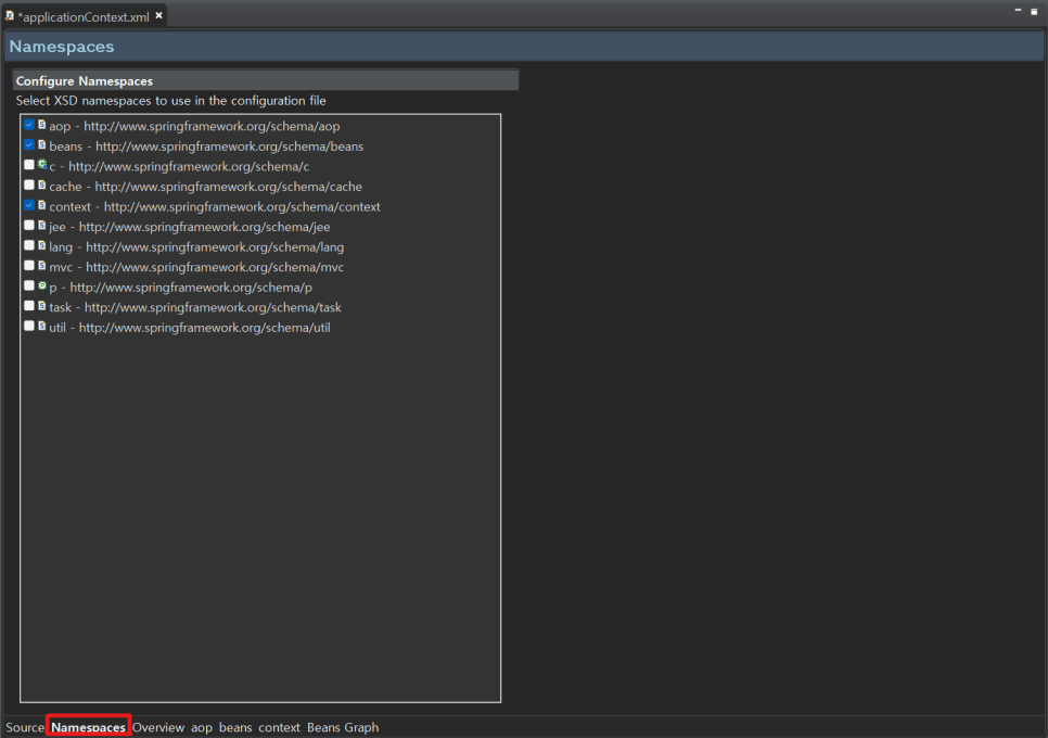 @을 사용하기 위해서는 먼저 Namespaces 로 들어가서 context 네임스페이스를 추가
